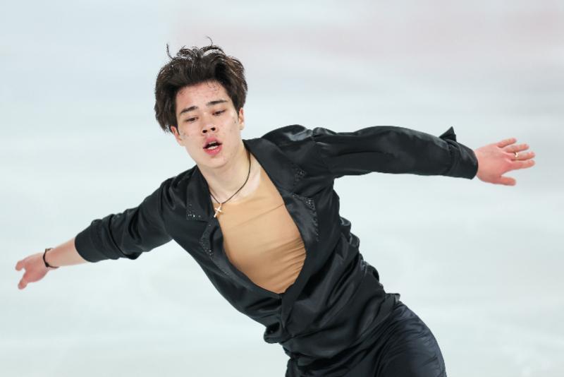 10月24日,中国选手戴大卫在2025年中国杯世界花样滑冰大奖赛男子单人滑短节目比赛中。新华社发